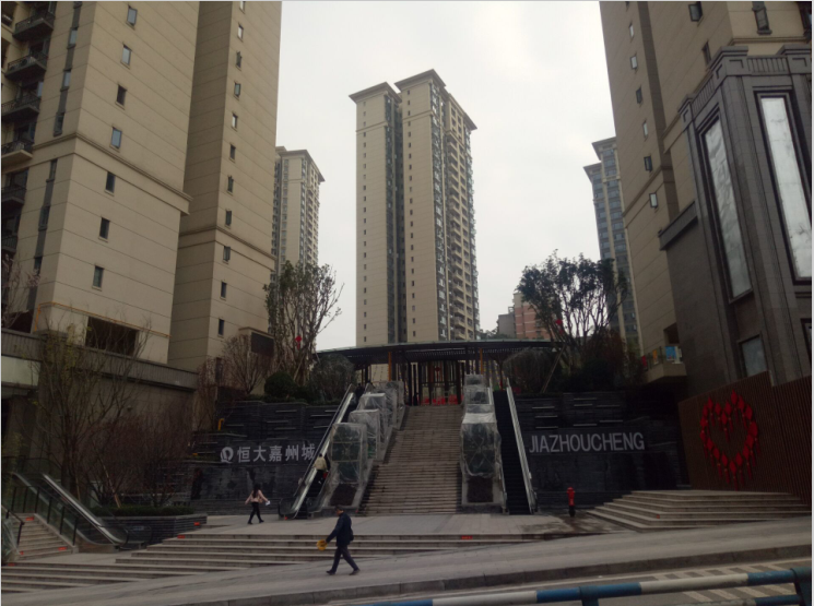 恒大嘉州城项目位于渝北区新溉路与金顶路相交处(中渝17号地块),项目占地面积为53579㎡(约80.45亩),总建筑面积约为23.3万㎡(其中居住面积约16.16万㎡、公建面积约为1.05万㎡、车库及设备用房面积约为5.84万㎡)。